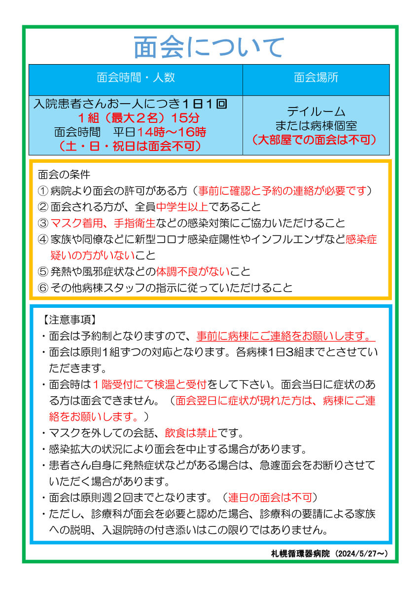 入院に関する手続きや必要な持ち物、面会時間、病室の環境について詳しくご案内いたします。